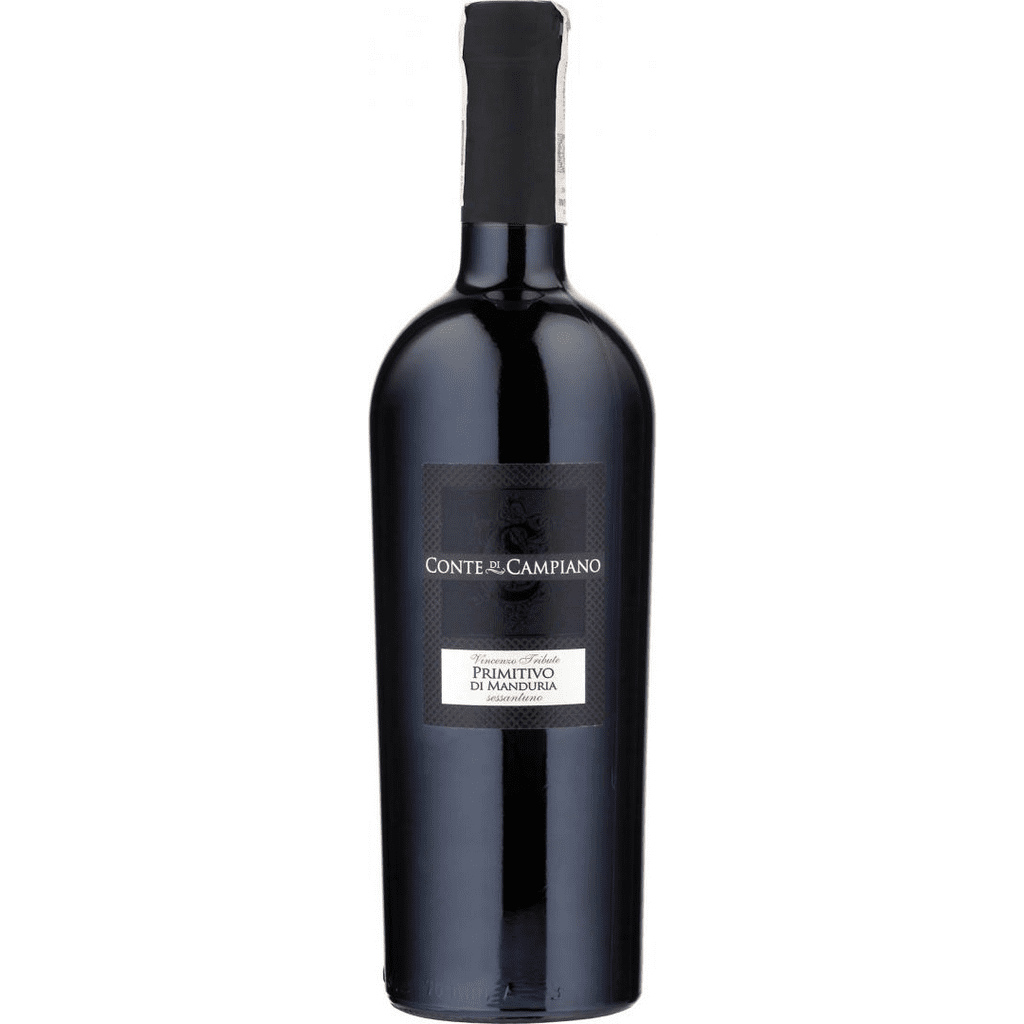 Conte di Campiano Primitivo di Manduria DOC to wytrawne czerwone wino. W aromacie dominują nuty cynamonu, drzewa sandałowego i odrobiny wanilii uzupełniają bukiet. Na podniebieniu jest Primitivo di Manduria DOC z.
